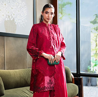 All premium Dhanak 3-piece suits with elegant embroidery.